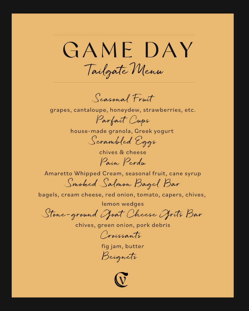 The Game Day Brunch Experience takes place in the upstairs dining rooms at Copper Vine, including exclusive access to the balcony overlooking the neighborhood, just blocks from the Superdome.