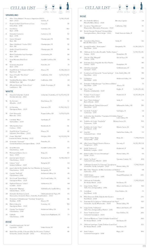 enjoy a seasonal curated flight | 15 for three 2.5 oz poursThe Favorites
