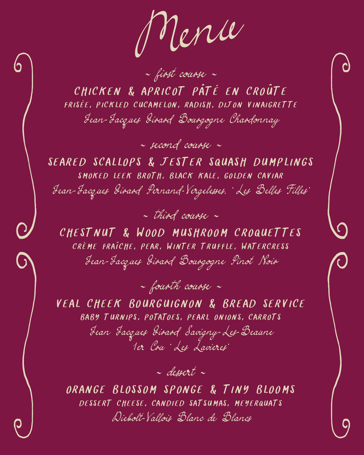 Executive Chef Amy Mehrtens will take guests on a culinary journey through a delectable, five-course meal inspired by the region, with modern takes on classic French dishes with a farm-to-table feel.